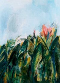 Die Qualität der Malerei ist frappant. Mehr aber noch Anne Fenchels Fähigkeit, die nicht selten auseinanderstrebenden, sich reibenden und sich abstoßenden Elemente letztlich immer zu bändigen. Dr. Maike Christadler bezeichnete bei der Vernissage die Wirkung der Bilder als „meist sehr beherrscht“ und erklärte dies durch die gemäßigten Farben. Blau und Grau herrschen vor. Und Anne Fenchel setzt mit sicherer Hand die Farbwerte, so dass sie sich „vertragen“, aber auch, dass sie sich verstärken wie zum Beispiel in dem Bild „Rotglas“, das intensivst leuchtet oder im schrillen, Schwarz und Gelb kontrastierenden „Wald“, aus dem man den Zorn über die Umwelt-Zerstörung herauszulesen glaubt.